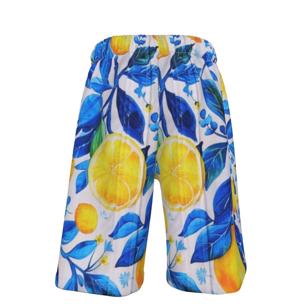 Vibrant Lemon & Blue Foliage Summer Aloha Shirt – Custom Photo Beach Short