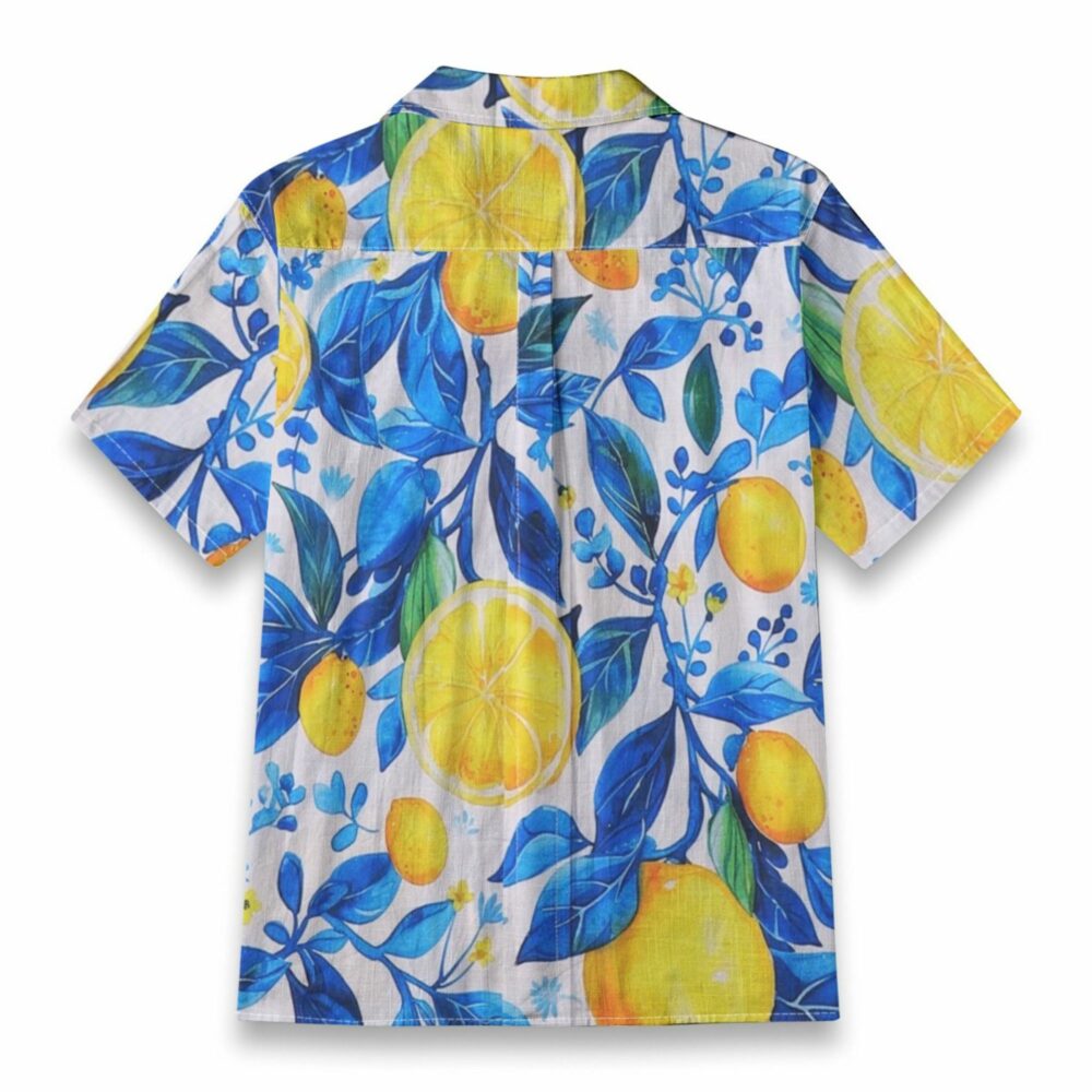 Vibrant Lemon & Blue Foliage Summer Aloha Shirt – Custom Photo Hawaiian Shirt