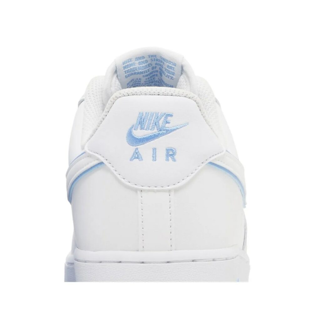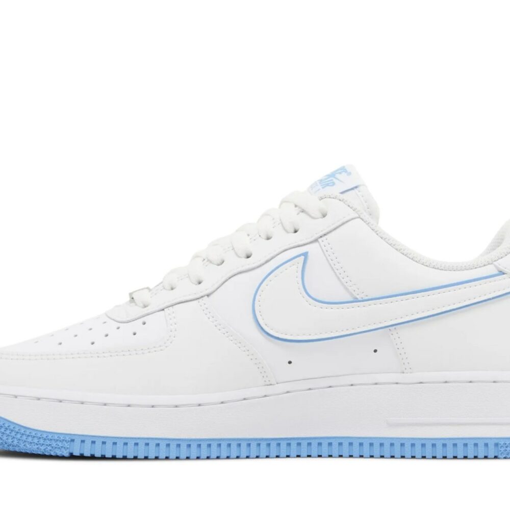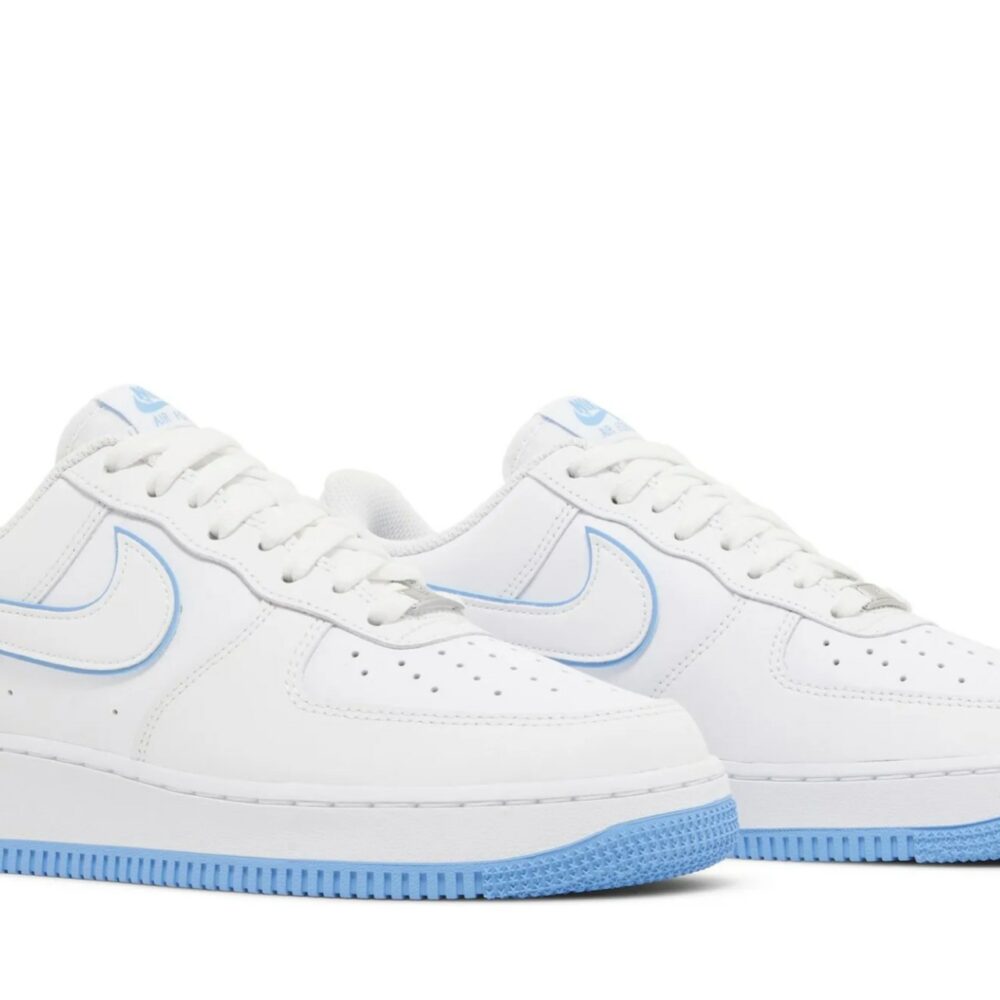 The Nike Air Force 1 ’07 ‘White University Blue’ presents a classic colorway of the retro hardwood icon. The low-top carries a pristine white leather upper, accented with a tonal Swoosh outlined in blue. The color is repeated on the woven Nike tongue tag and the Nike Air logo embroidered on the back tab. Undergirding the sneaker is a durable cupsole, highlighted by white sidewalls and a blue rubber outsole. An encapsulated Air-sole unit in the heel provides lightweight cushioning.