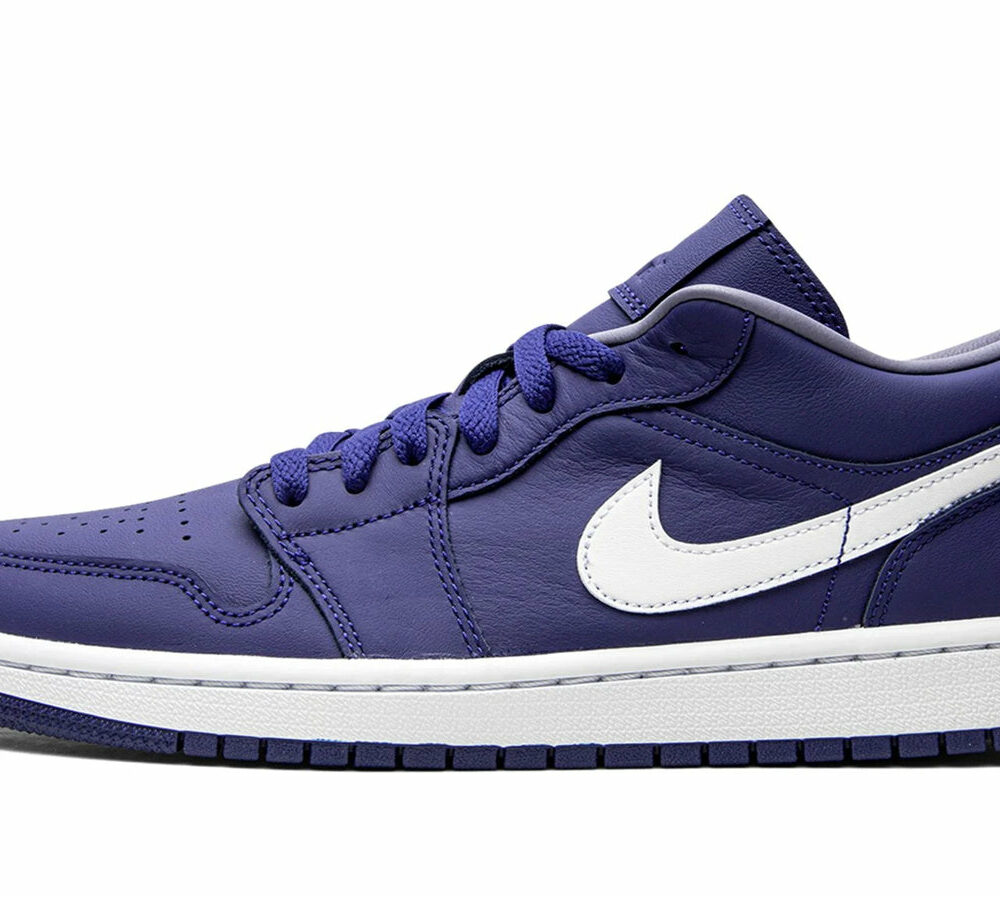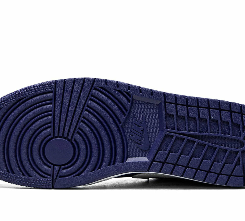 The Deep Royal Blue colorway features a rich shade of blue that covers the majority of the upper, giving the shoe a bold and striking appearance. The blue color scheme is complemented by white accents on the Swoosh and midsole which add a bit of contrast to the shoe. The shoe retains most signature design elements of the Jordan 1 like the perforated toe box and stitching detail on the midsole. Branding elements on the shoe include a wings logo on the heel and the Jumpman logo on the tongue.