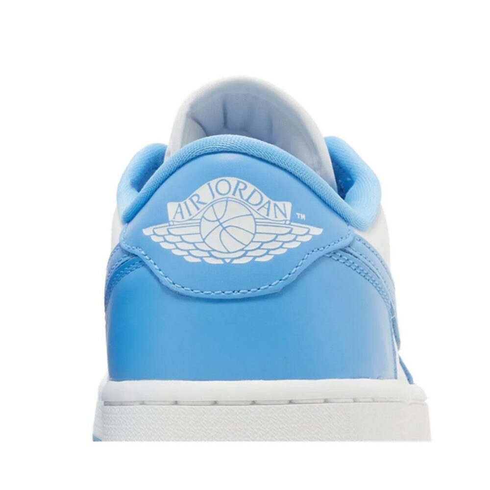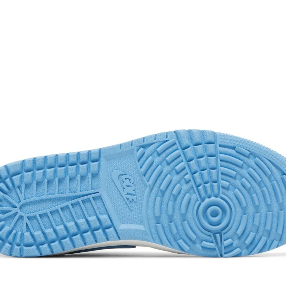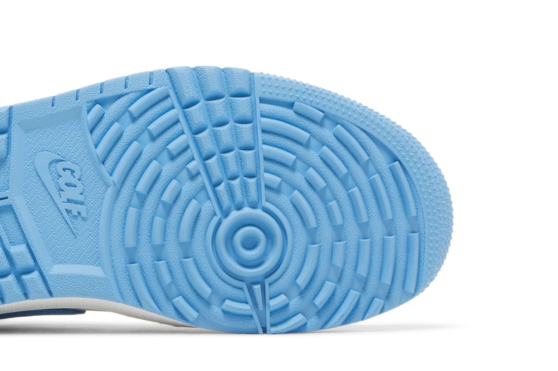 The Air Jordan 1 Low Golf ‘UNC’ transforms the iconic silhouette into a performance shoe built for the golf course. The all-leather upper pairs a crisp white base with contrasting overlays in University Blue. Jumpman branding appears on the woven tongue tag, while a retro Wings logo is stamped on the heel tab. Like the original Air Jordan 1, the midsole packs an encapsulated Air-sole unit in the heel for lightweight cushioning. The outsole features an integrated traction pattern that delivers exceptional grip during rotational movements.
