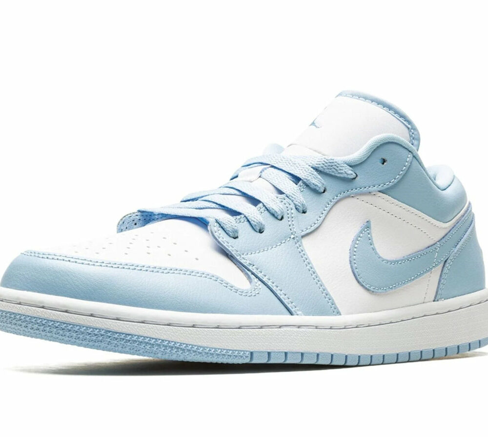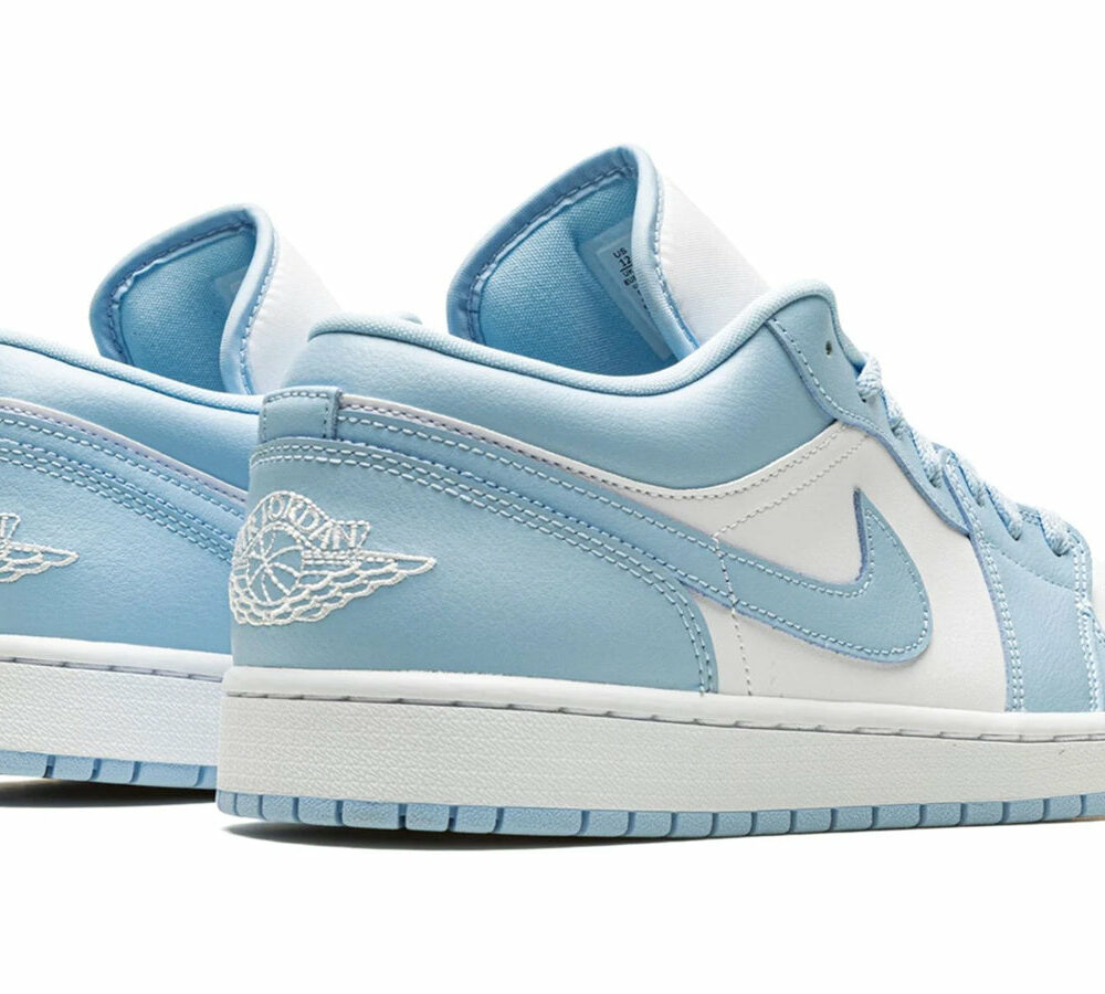The Air Jordan 1 Low SE Reverse Ice Blue is constructed using white tumbled leather, and Ice Blue nubuck across the uppers. Jordan Brand used a blue Air Jordan wings logo across the heel and a Jumpman logo that sits on top of the tongue. The sneakers are laced with Ice Blue laces.