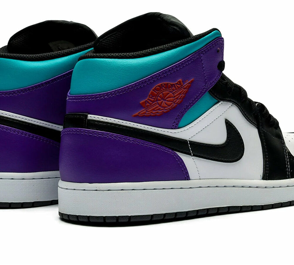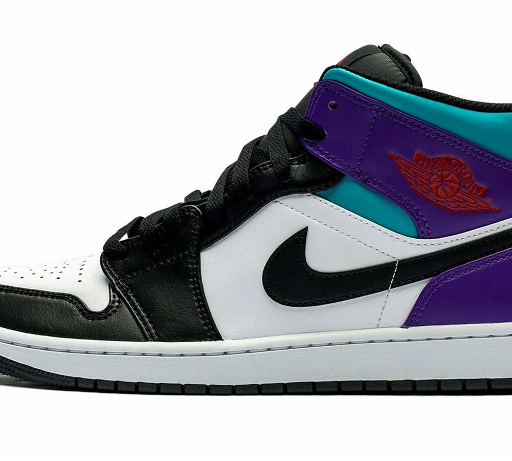 The Air Jordan 1 Mid ‘Grape’ brings a fresh and vibrant colorway to the iconic mid-top silhouette. Built with a crisp white leather base, the design is highlighted by rich Grape purple and contrasting green accents, delivering a bold yet balanced look inspired by classic Jordan heritage.