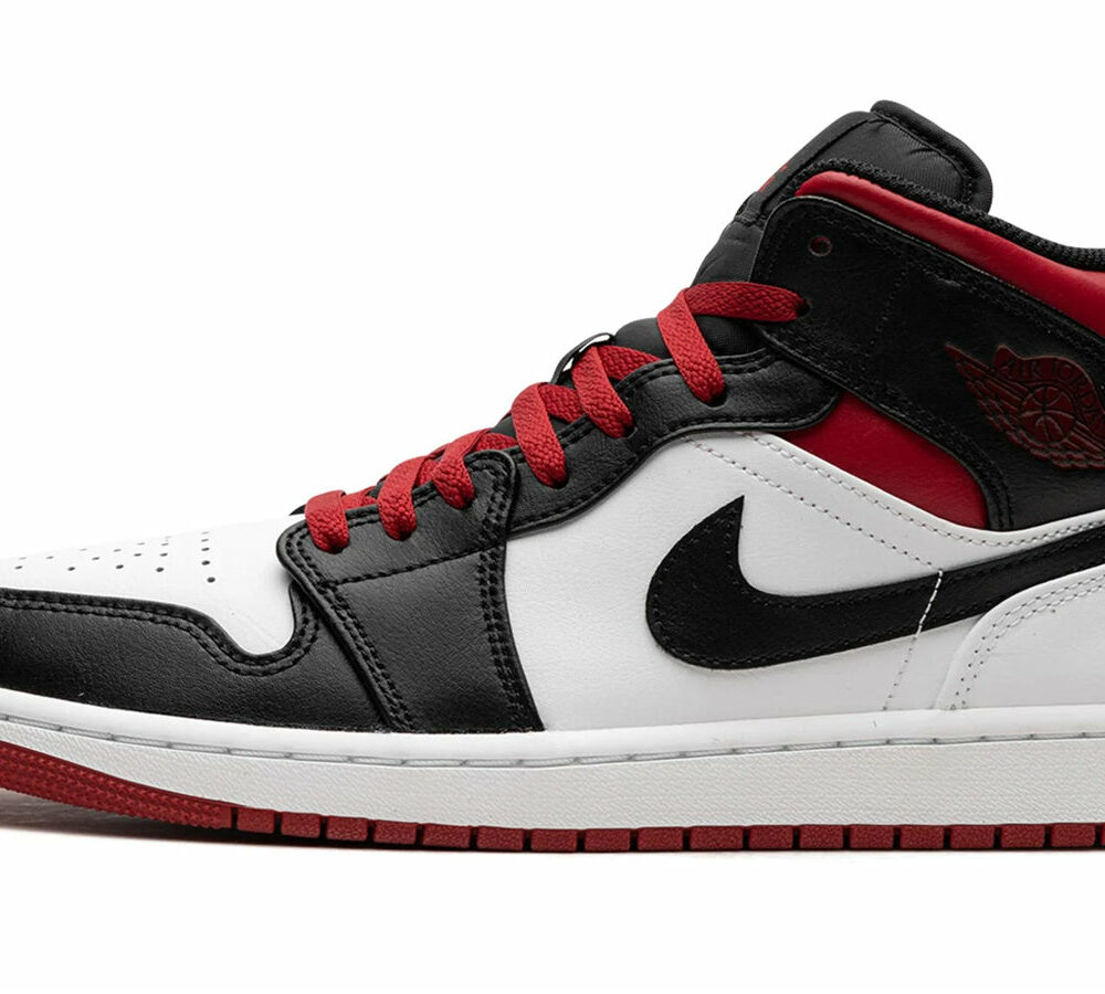 The Jordan 1 Mid Gym Red Black Toe is a sneaker variation of the Air Jordan 1 model, which comes in a mid-top design.