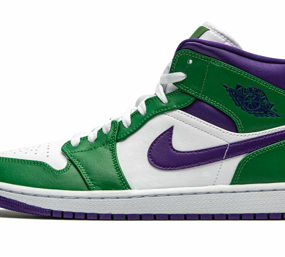 The all-leather upper comprises a White Base with Aloe Verde overlays on the forefoot, collar, eyestays, and heel. Court Purple on the Swooshes, debossed ‘Wings’ logo, Jumpman branding on the tongue, and ankle collar highlights the upper. Rounding out this sneaker’s design is a white midsole and a Court Purple rubber outsole.