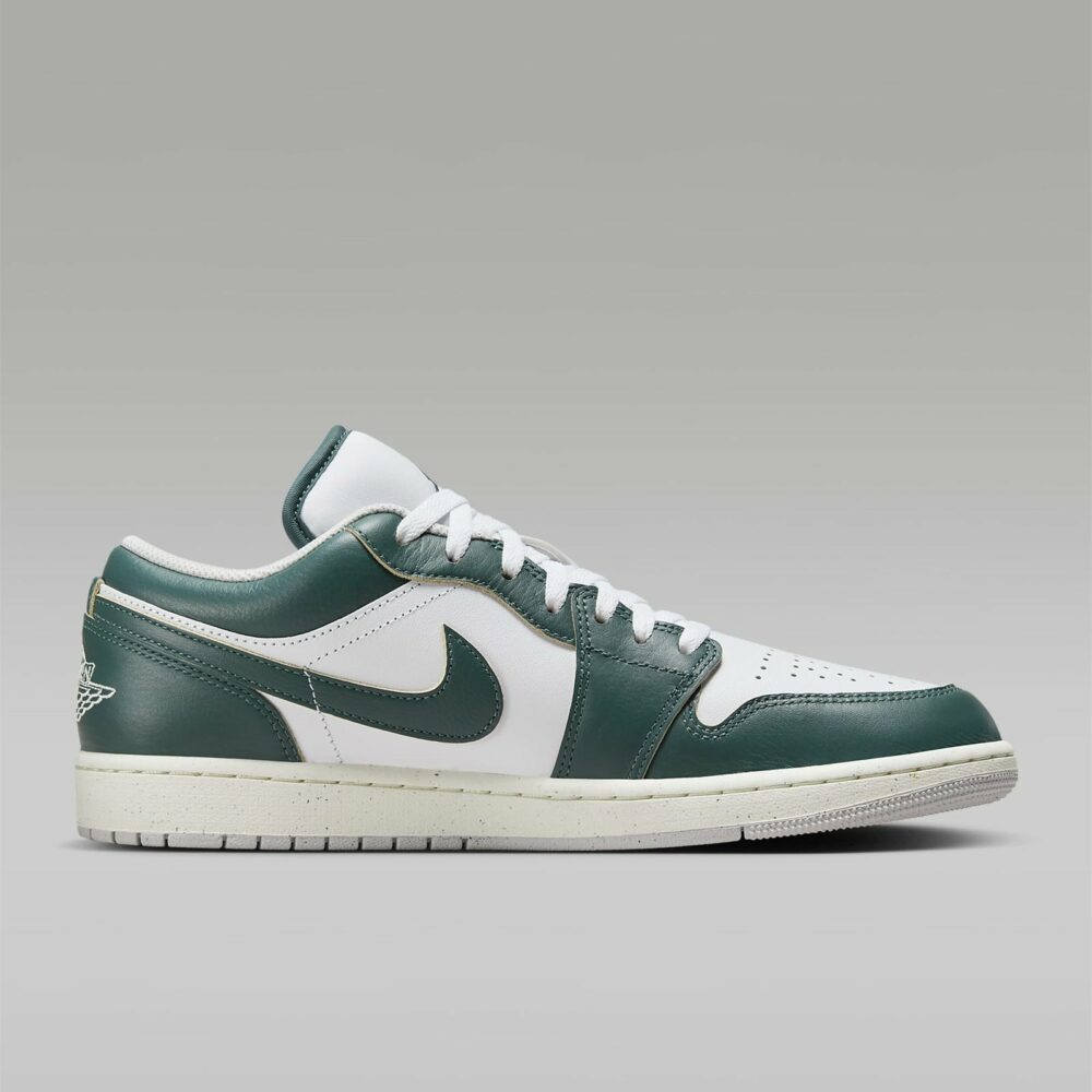 The Jordan 1 Low SE Oxidized Green combines a distinctive color palette with Jordan’s iconic design heritage, offering a striking addition to sneaker collections. Its modern updates and premium materials create a fresh take on the classic low-profile silhouette, appealing to sneaker enthusiasts.