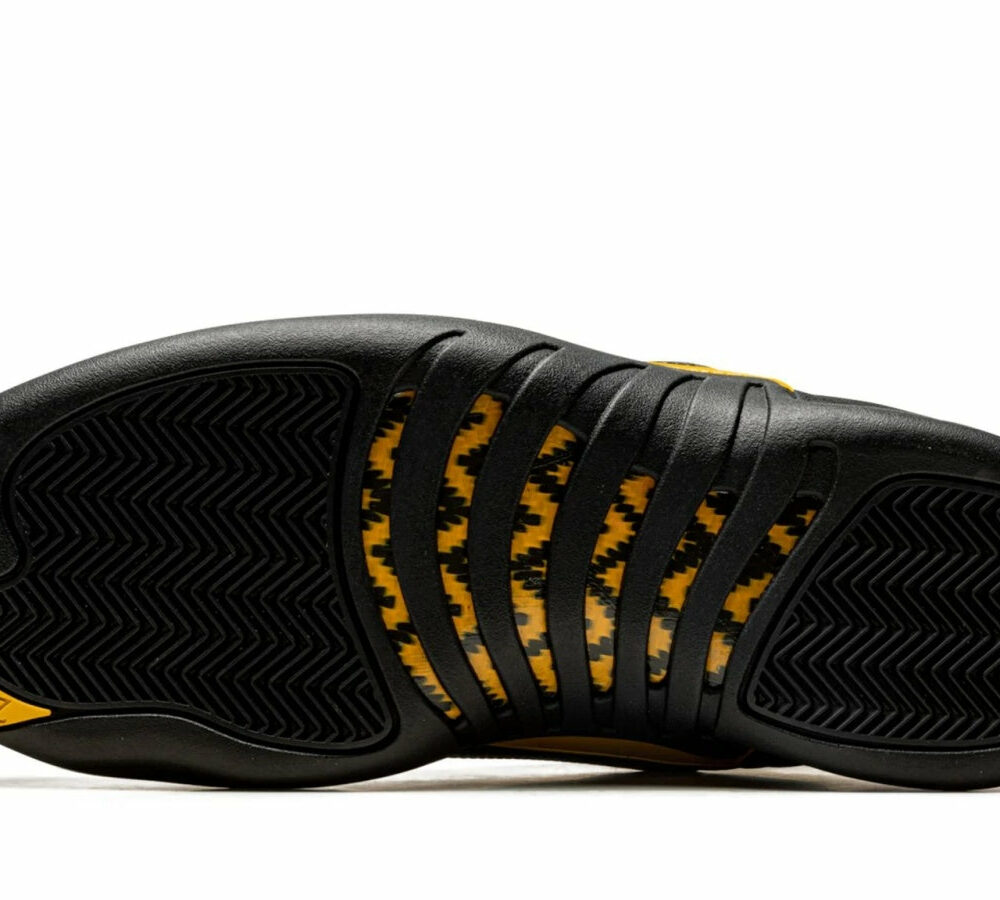 Experience sneaker history with the Air Jordan 12 Retro ‘Black Taxi’. Michael Jordan’s championship silhouette provides an iconic and sleek style, crafted from black leather that is accented with tonal stitched detailing for a classic look. Offering extra stability, the mudguards have been bolstered with synthetic leather in a matching black color to provide a smooth finish. Complemented by yellow accents, these eye-catching additions add character and snappiness to this timeless classic. In addition, each pair of sneakers includes midfoot overlay, Jumpman branding on the tongue, and full-length Zoom Air cushioning for enhanced responsiveness. Offering the perfect combination of style, comfort and timeless design – this Air Jordan 12 Retro 'Black Taxi' is sure to become your go-to shoe for any special occasion or casual outing.