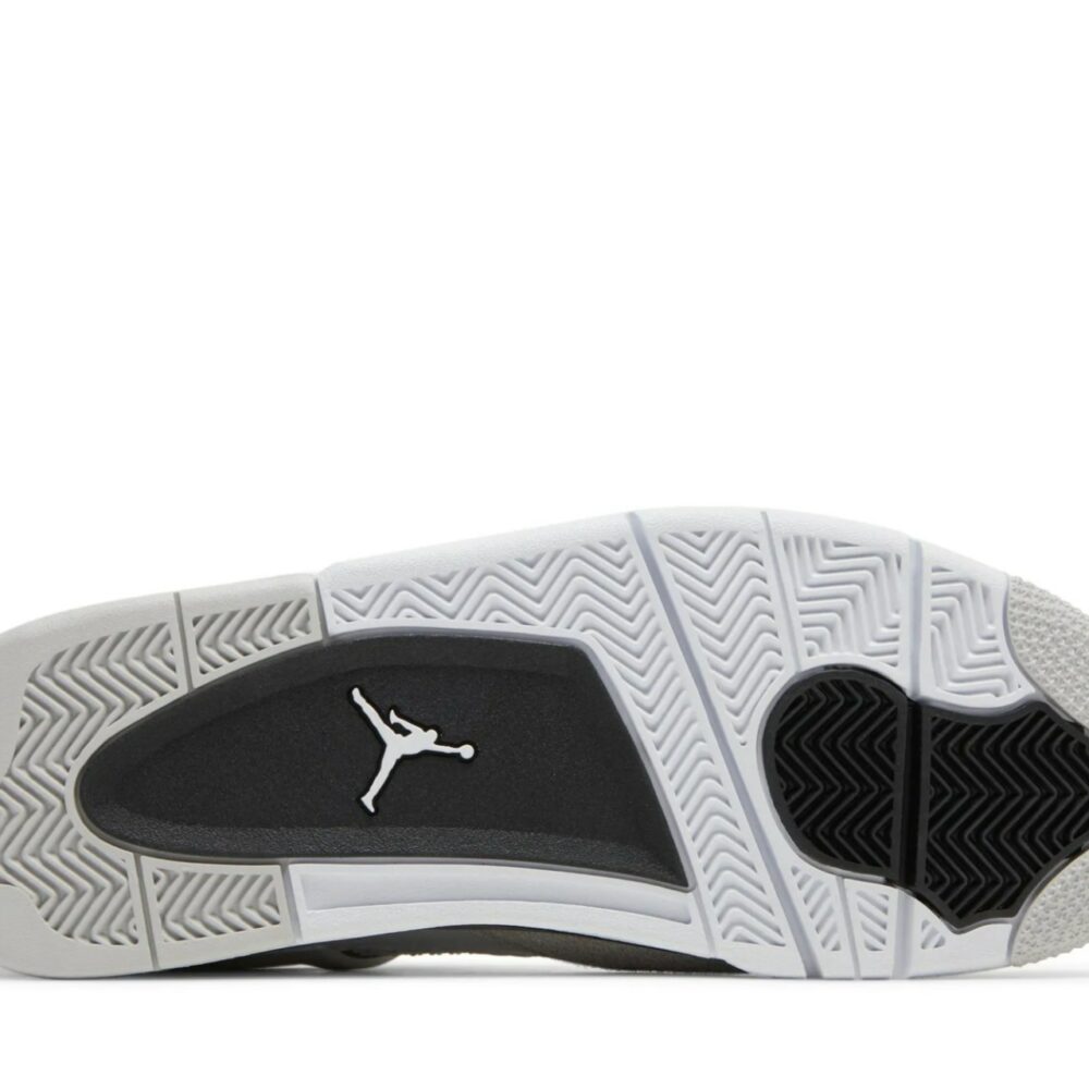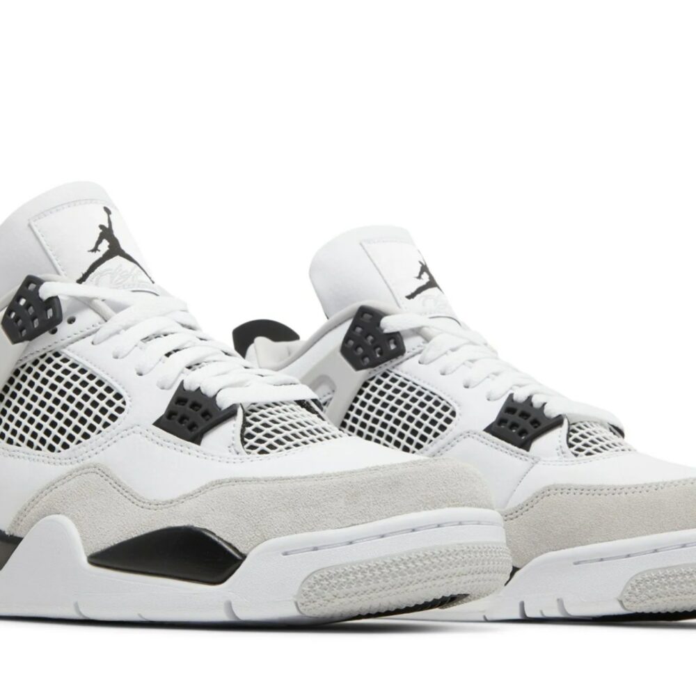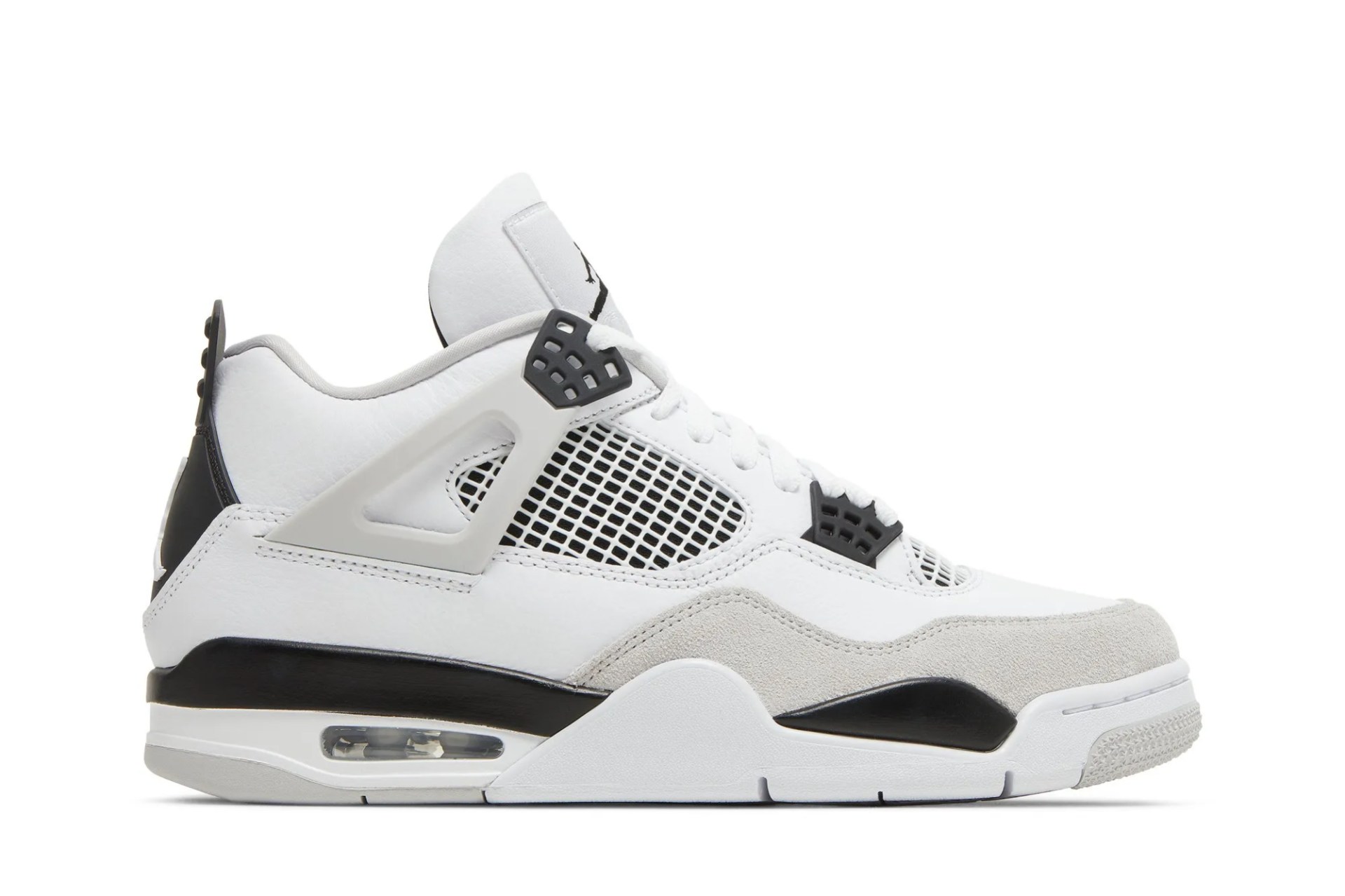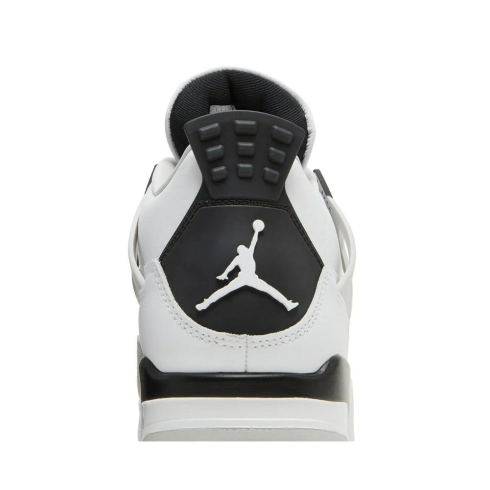 The Air Jordan 4 Retro Military Black showcases the same color blocking and materials featured on the OG Military Blue colorway from 1989. Smooth white leather is utilized on the upper, bolstered with a forefoot overlay in grey suede. Contrasting black accents make their way to the TPU eyelets, molded heel tab, and the Jumpman logo displayed on the woven tongue tag. Lightweight cushioning comes courtesy of a two-tone polyurethane midsole, enhanced with a visible Air-sole unit under the heel.