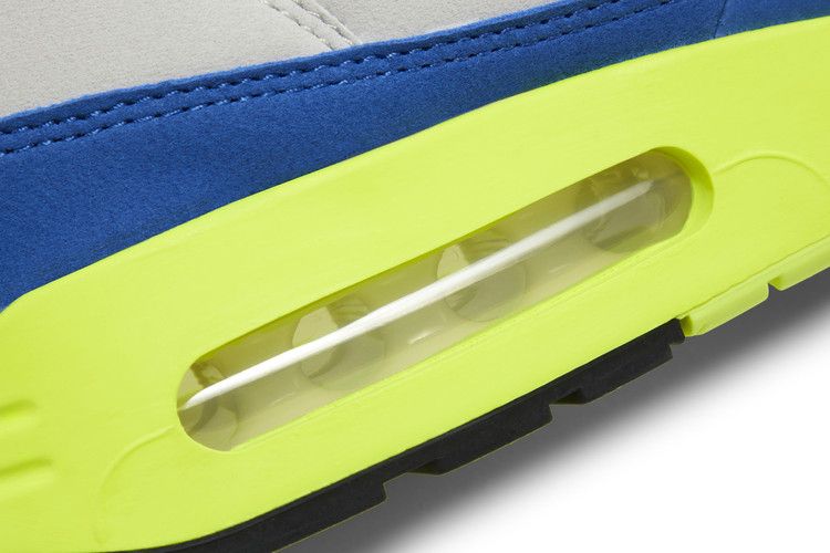 Launching as part of Nike's Air Max Day 2024 festivities, the Nike Air Max 1 '86 OG 'Big Bubble' takes inspiration from an original colorway of the groundbreaking silhouette. The upper features breathable white mesh construction with grey synthetic suede overlays and contrasting royal blue accents on the Swoosh and mudguard. A woven '3.26' tag adorns the tongue, while embroidered Nike Air branding appears on the back heel. A large-volume Max Air enhances the lightweight foam midsole, finished in an eye-catching Volt hue in a nod to the first ever AM1 'Air Max Day' colorway from 2014.