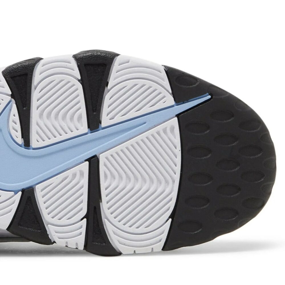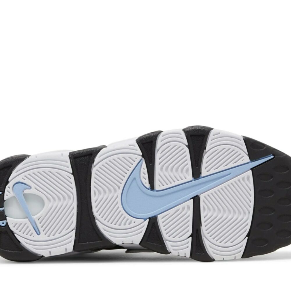 The Nike Air More Uptempo ‘Cobalt Bliss’ revives the ’90s hoops shoe that embodies the bold hardwood aesthetic of that bygone era. The bulky mid-top sports a black nubuck upper, accented with white leather ‘AIR’ lettering outlined in light blue trim. A speed lacing system combines with elastic straps to provide a secure fit, while the tongue is constructed from padded mesh for improved breathability. The lines of the graffiti-style ‘AIR’ graphic extend to the midsole, featuring visible Air-sole cushioning for a smooth ride.