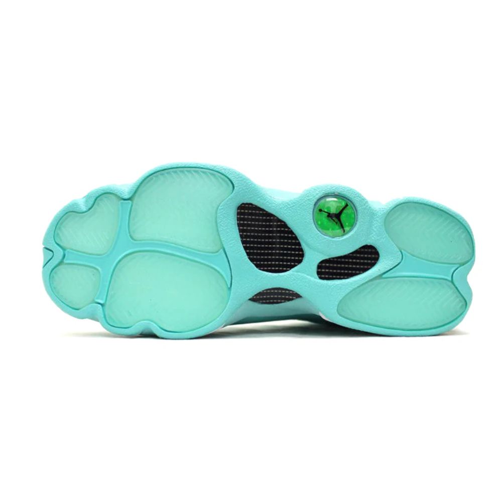 Part of the What is Love pack, the Air Jordan 13 ‘Singles Day’ appears in a women’s-specific colorway that features a teal application on the smooth and quilted leather combination on the upper. White accents emerge on the panther paw-inspired midsole and outsole, while bronze tones are displayed on the classic hologram logo.