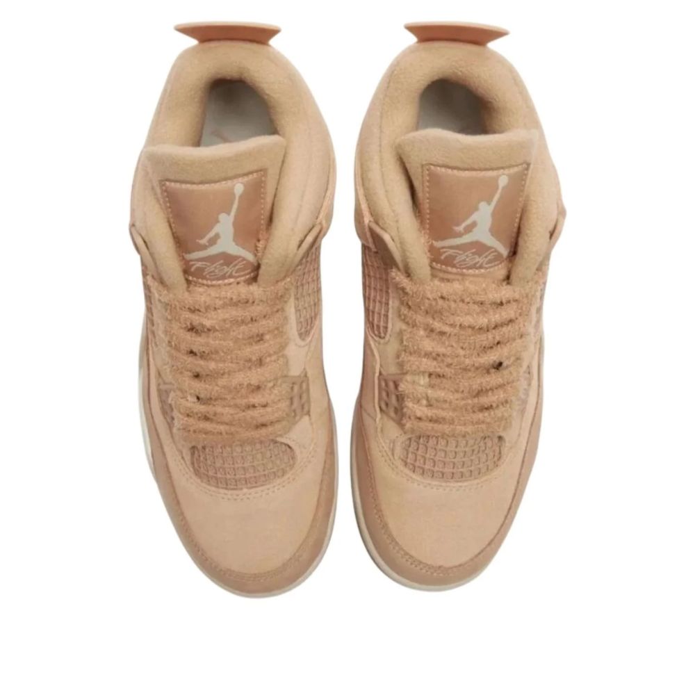 The Air Jordan 4 Retro "Cozy Girl" updates the classic silhouette with a premium, lifestyle-focused approach perfect for fall and winter. It features a soft, tonal Hemp and Light Orewood Brown colorway across the entire upper. The design emphasizes comfort through materials like hairy suede and plush chenille that cover the netting and tongue. Rope laces and the subtle contrast of the Hemp-colored tongue label complete this boot-like aesthetic, all sitting atop a matching Light Orewood Brown sole unit.