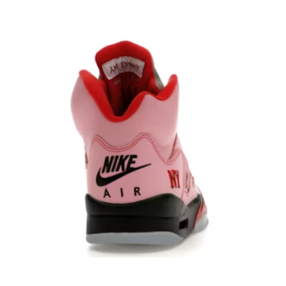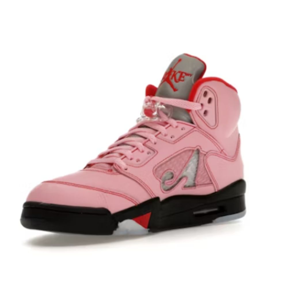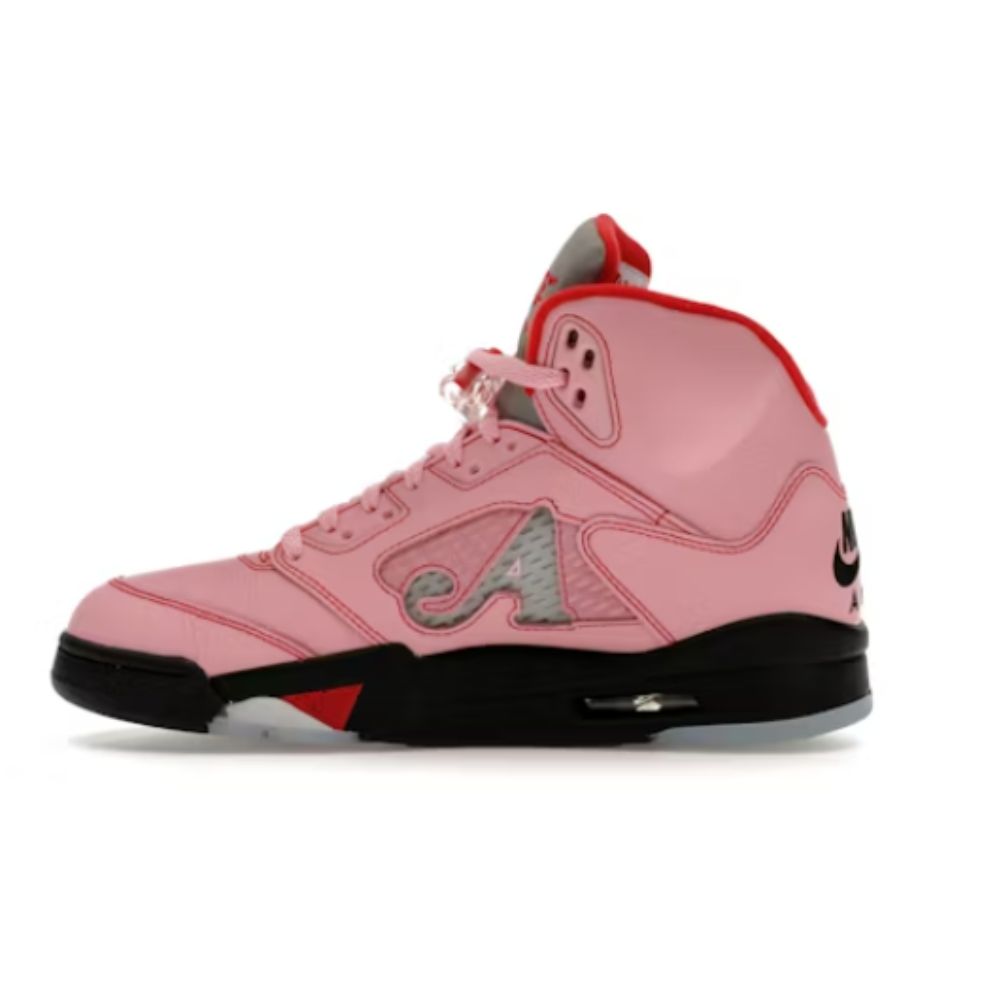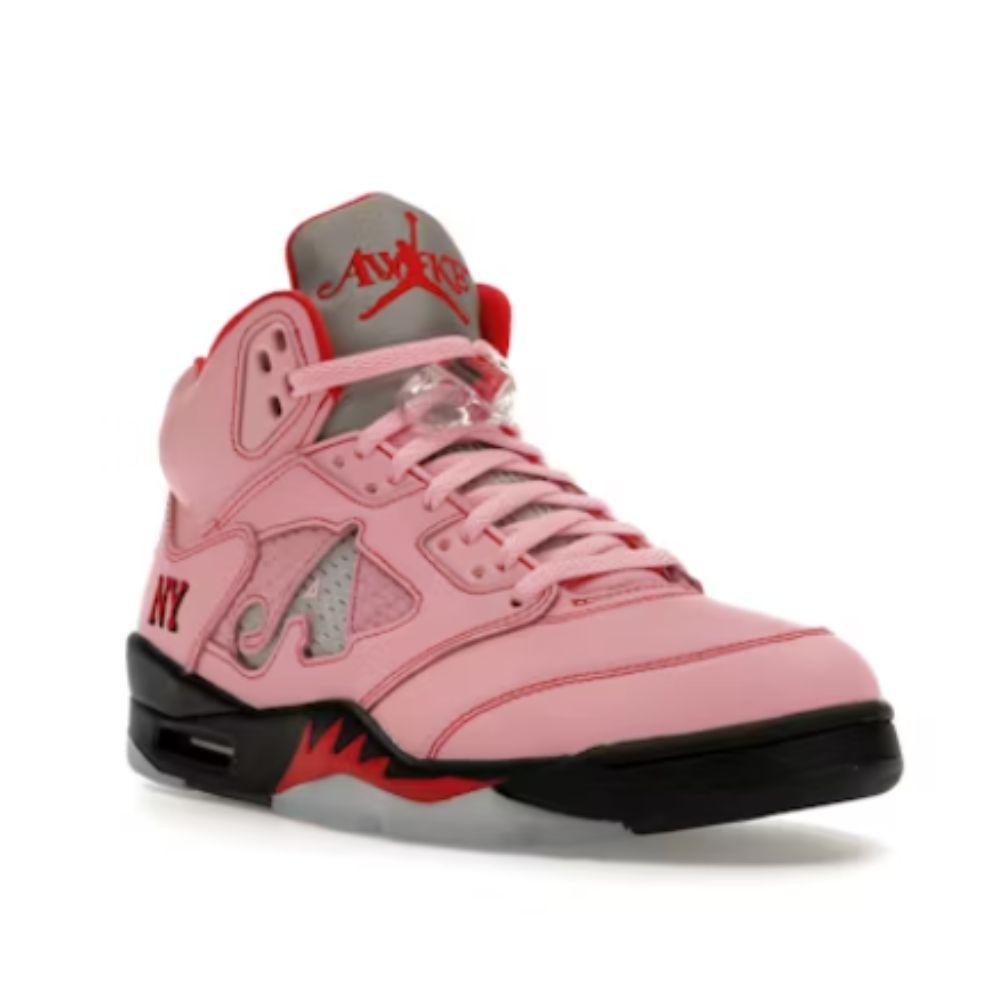 The Jordan 5 Retro Awake NY Arctic Pink boldly reimagines a hoops icon through the lens of Angelo Baque’s New York label. Dressed in a plush Arctic Pink upper that sets off the silhouette’s angular lines, this collaboration balances modern street style with heritage cues from the original 1990 design. A Metallic Silver reflective tongue catches the light with every step, while University Red pops at the liner and lace toggle energize the look. Signature AJ5 details return in full force: translucent side netting, sculpted ankle padding, and the shark-tooth midsole graphics set atop a clear icy outsole for a crisp finish. Subtle co-branding and the Awake Nike hangtag underscore the project’s design story without overpowering the palette. Style code DV4982-600; colorway Arctic Pink/Metallic Silver-University Red-Black-White-Clear. Built for comfort as much as statement-making style, the Jordan 5 Retro offers visible Air cushioning underfoot for day-long wear, supported by a durable rubber outsole and dependable herringbone traction. Breathable mesh panels and a padded collar ensure a secure, comfortable fit, while included White and Red laces let you customize your look, from understated to high-contrast, in seconds. Whether paired with tapered denim or technical cargos, the Awake NY Arctic Pink finish elevates any rotation and photographs beautifully in natural or low light. A standout 2025 collaboration on the Air Jordan 5, this pair blends collectible appeal with everyday versatility for sneakerheads and newcomers alike. Our team loves this product because it fuses Awake NY’s refined color sensibility with classic Air Jordan 5 comfort and performance, making it great for style-forward daily wear and curated collections.
