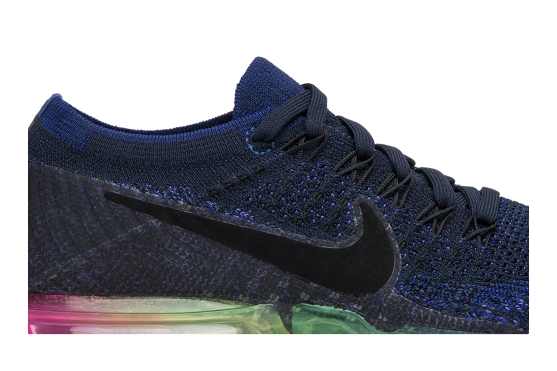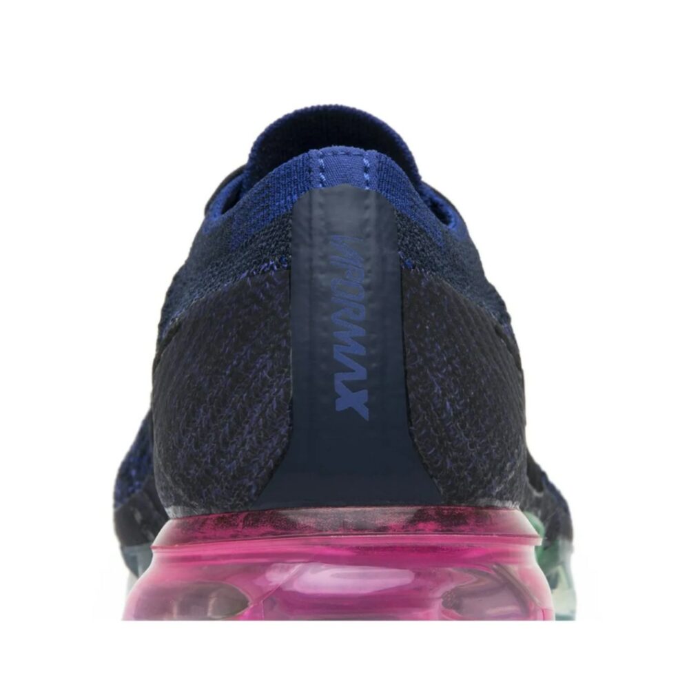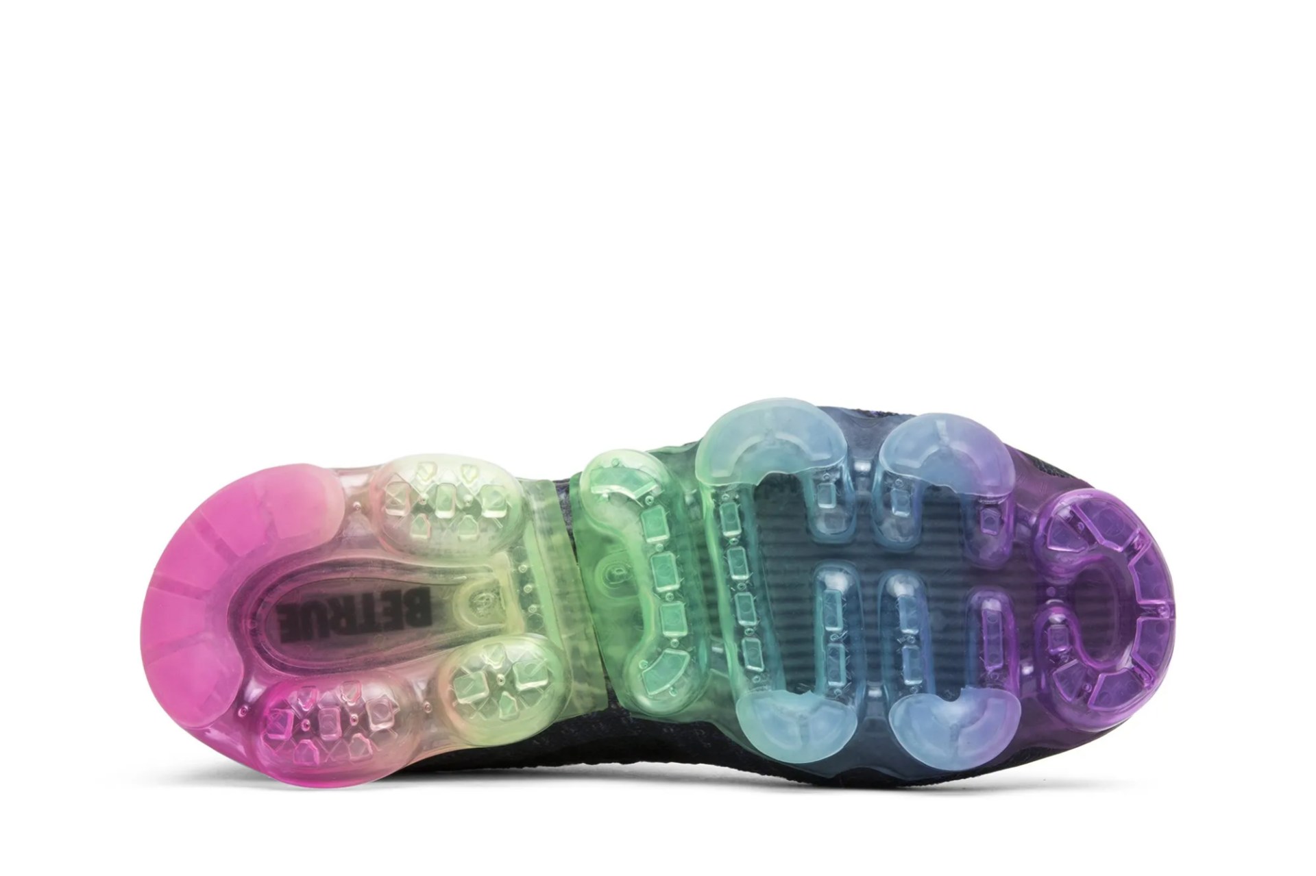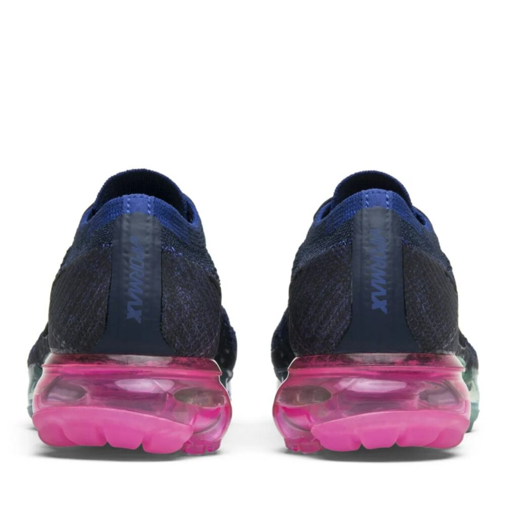 The NikeLab Wmns Air VaporMax ‘Be True’ celebrates the LGBTQ community with a rainbow Air VaporMax unit featuring the eight colors of the 1978 Pride flag. Released in June of 2017, the design also features a dark violet Flyknit upper with a black Nike swoosh and Flywire cables.