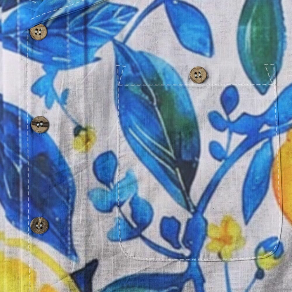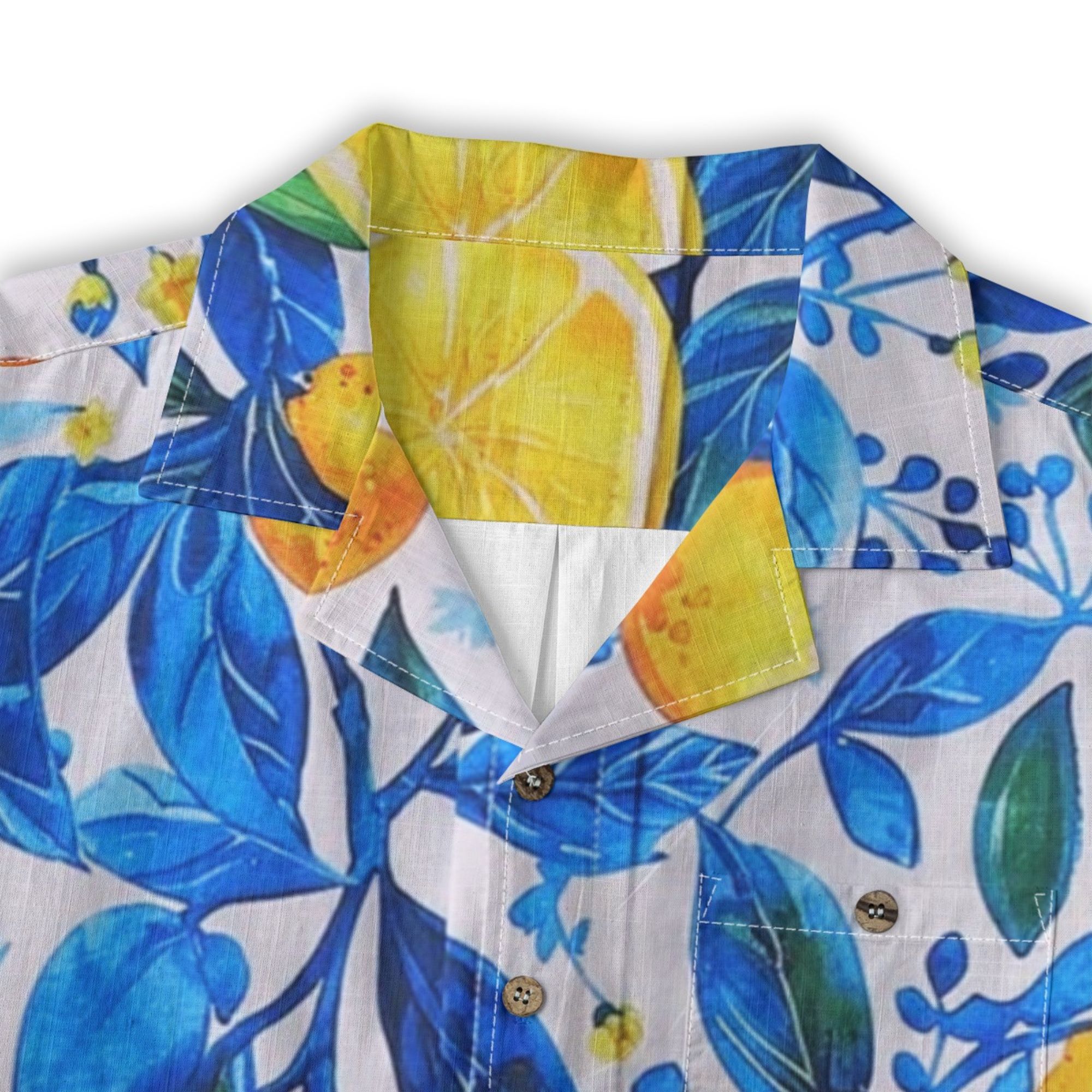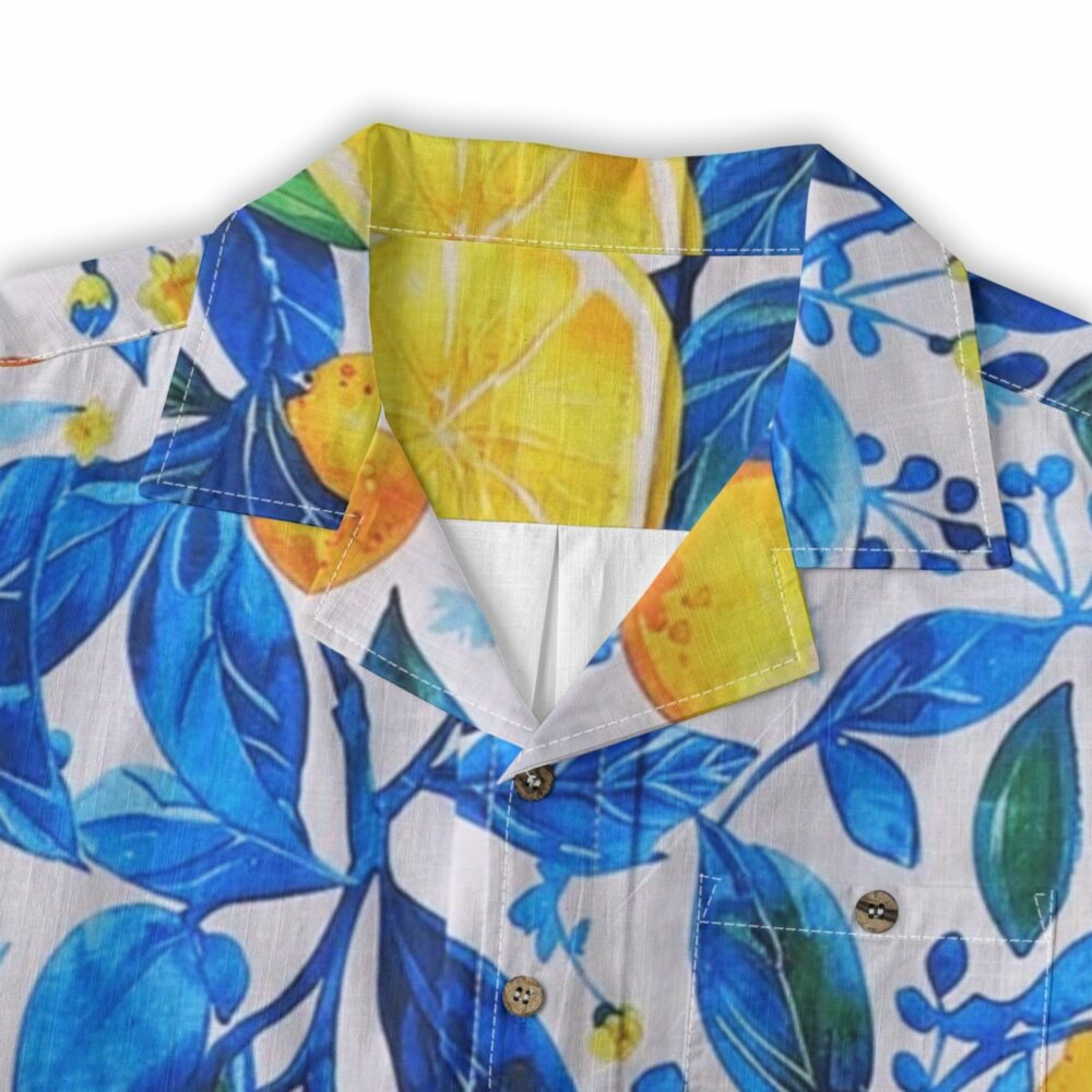 Vibrant Lemon & Blue Foliage Summer Aloha Shirt – Custom Photo Hawaiian Shirt