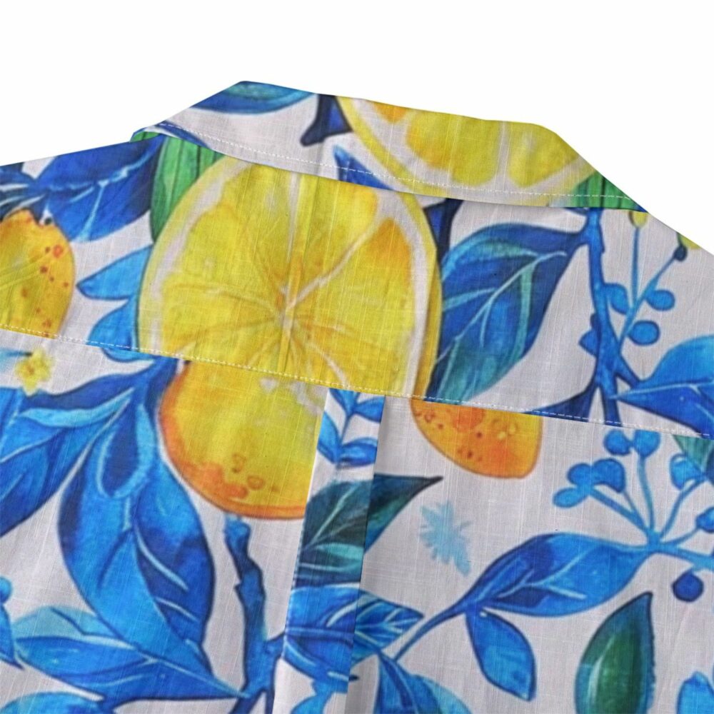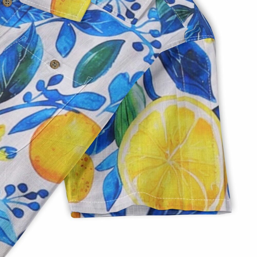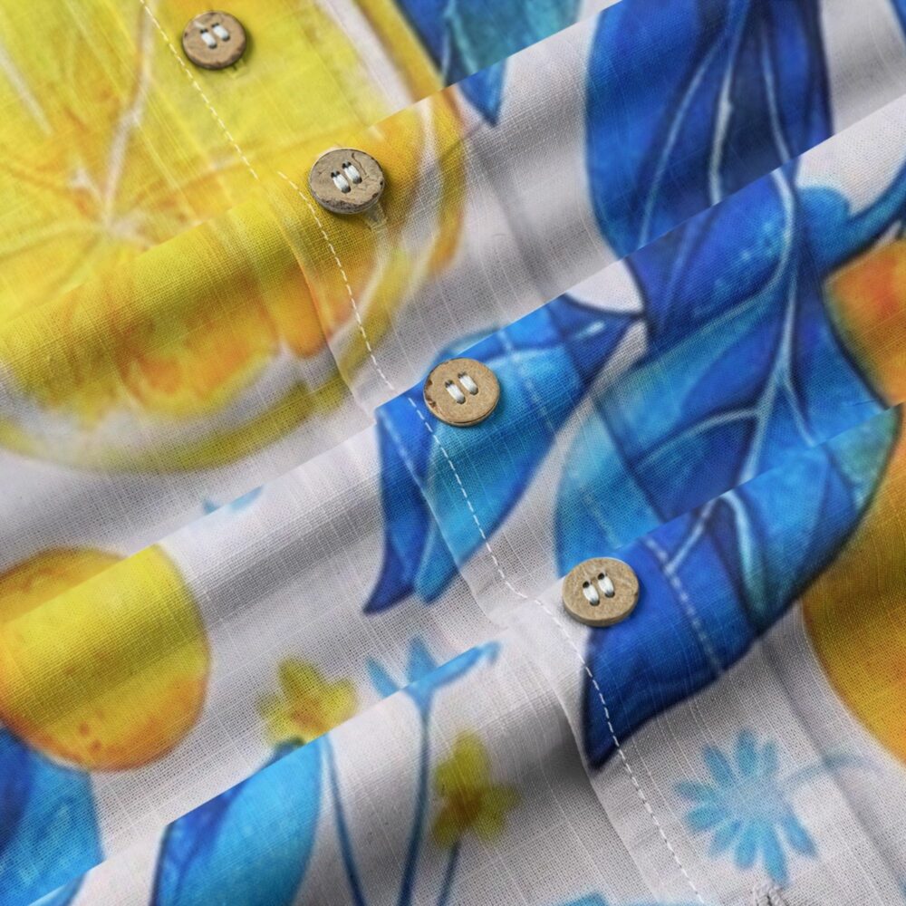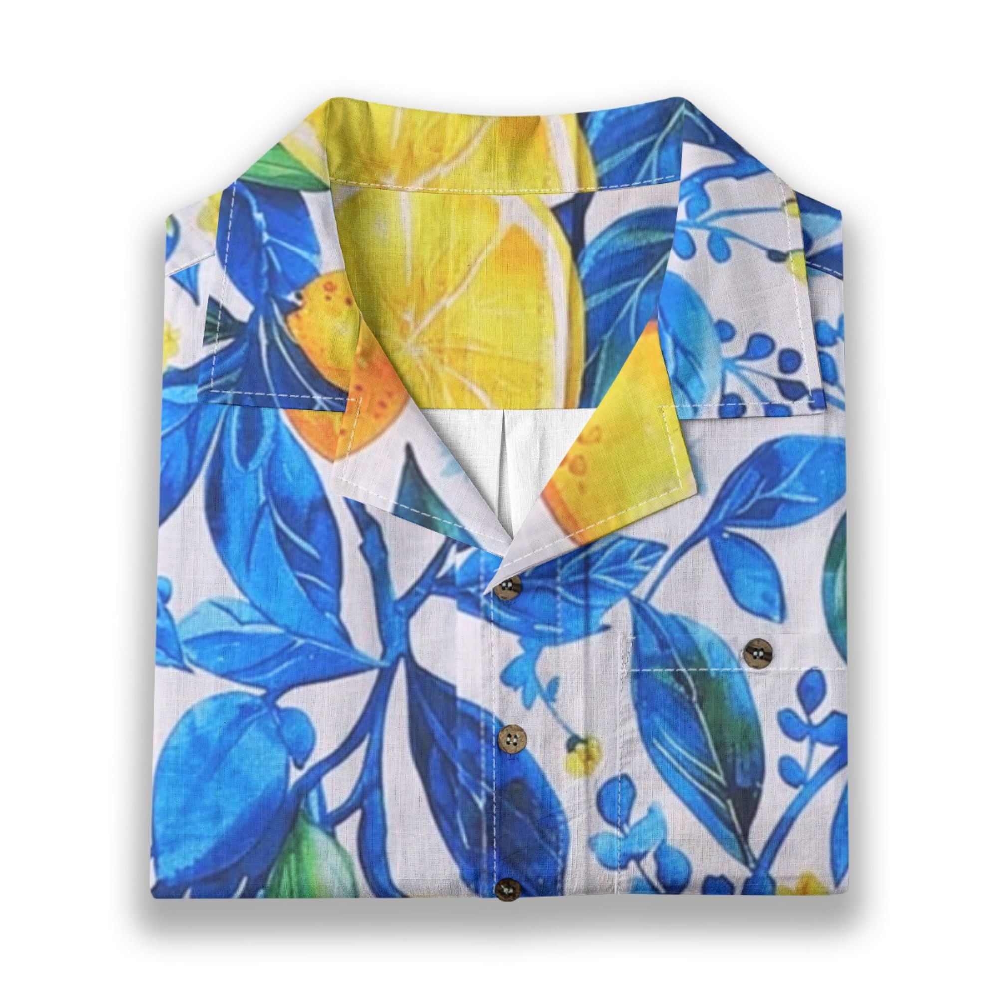 Vibrant Lemon & Blue Foliage Summer Aloha Shirt – Custom Photo Hawaiian Shirt